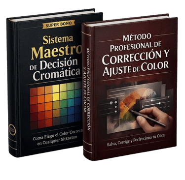 Dos sistemas avanzados que elevan tu dominio del color a nivel profesional. Aprende a tomar decisiones cromáticas con criterio, incluso fuera de las combinaciones listas, y domina un método preciso para corregir y ajustar colores sin arruinar tu obra. Juntos, estos Súper Bonos te dan control total, seguridad y claridad en cada etapa del proceso creativo.